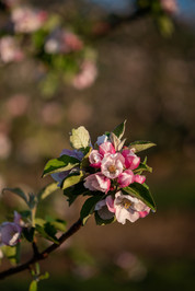 Our neighbours own a beautiful orchard and have been sharing photos of the current blooming blossom on their various fruit trees saying they wish they could do it justice and be able to let others in to see so I offered/asked if I could come and take my walk there while they were closed since they're but one field away from us. I ended up going at 5:30am this morning (with pre-arranged permission) while everyone was still asleep so I was literally the only person around at sunrise as I walked down there.